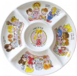 Serveer je snacks en chips met dipsaus in deze vrolijke schaal van Blond Amsterdam. Deze snackschaal heeft 5 vakken en een diameter van 33 cm. De schaal is van aardewerk en vaatwasmachinebestendig.