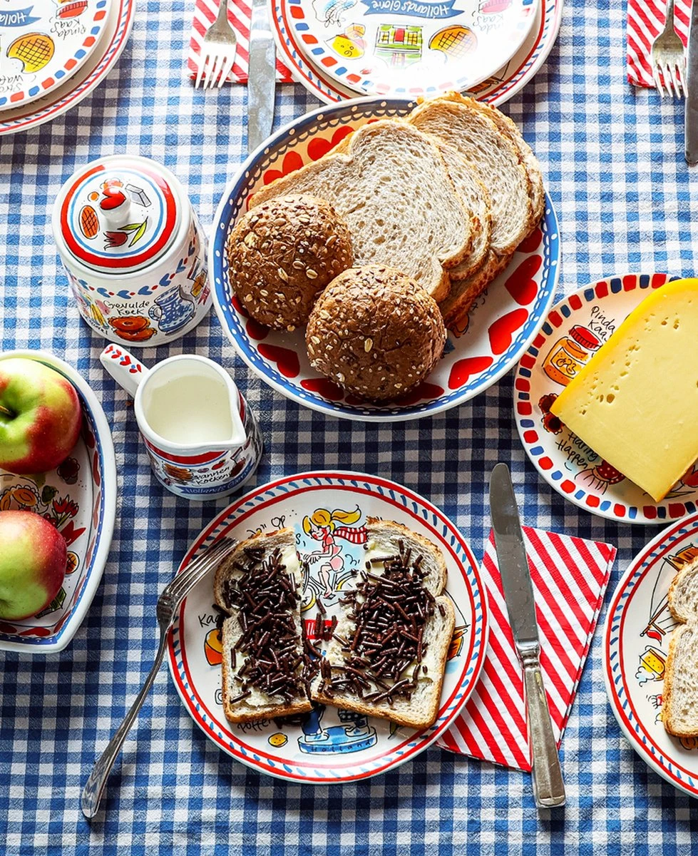 We love Holland! De nieuwe Hollands Glorie lijn van Blond Amsterdam is vormgegeven in frisse rood/wit/blauwe tinten en voorzien van typisch Hollandse illustraties. Op dit diepe bord staan o.a. illustraties van tulpen, klompen en stamppot.