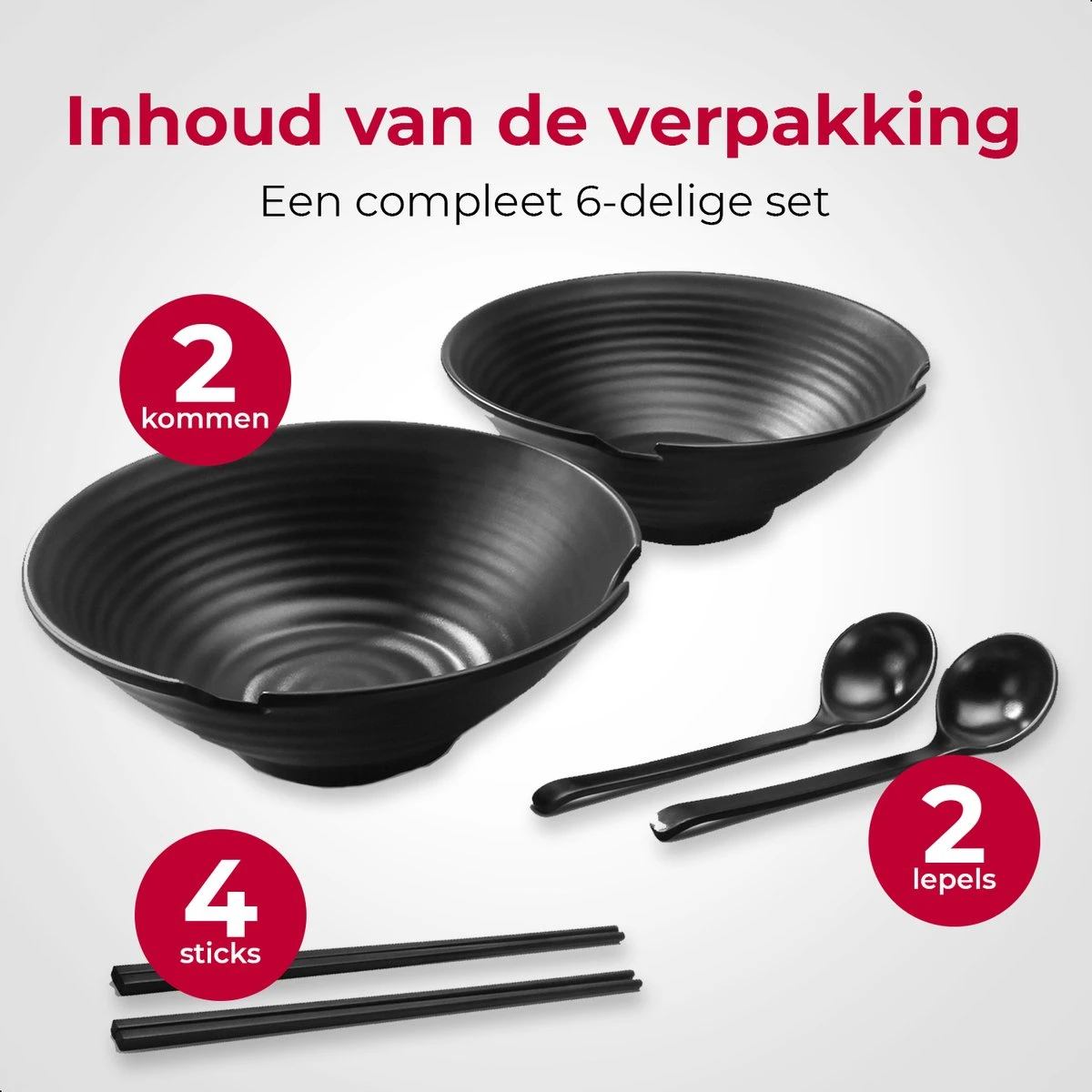 De noodle kommen zijn gemaakt van 100% melamine en daardoor ontzettend sterk. Hierdoor zijn de noodle kommen zeer duurzaam en gaan ze ontzettend lang mee. Door het ontwerp van de kommen zijn ze ook kras- en hittebestendig. Naast deze functionele voordelen zien de noodle kommen er ontzettend stijlvol uit en brengt het een Aziatische sfeer met zich mee.