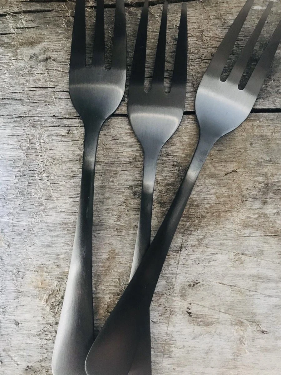 De Vintage Zwartkleurige vorkjes hebben zachte lijnen en vloeiende rondingen.