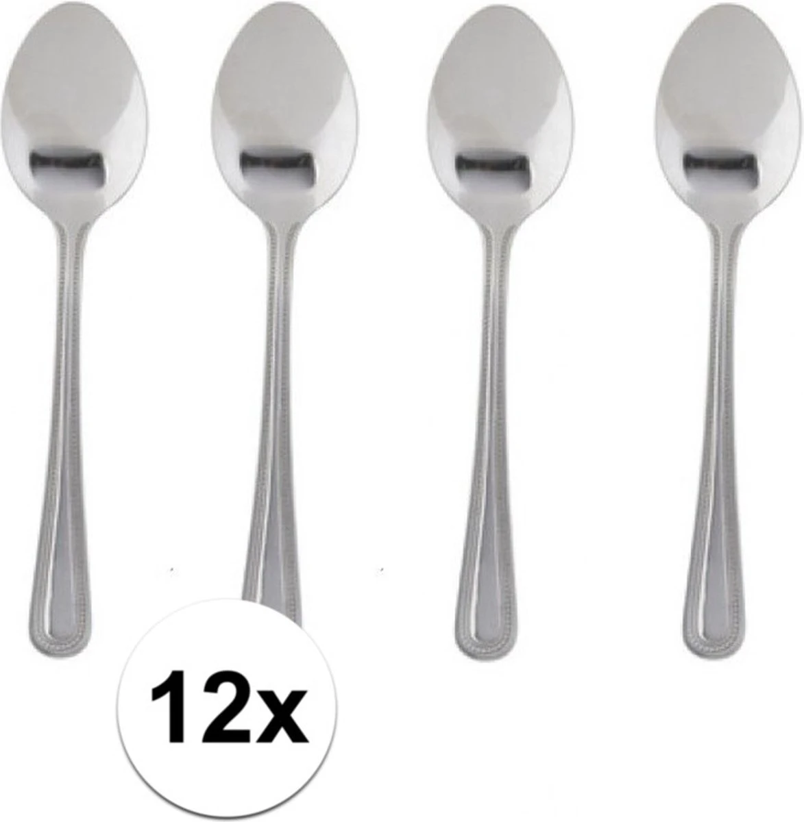 12x dessert lepeltjes. Deze thee/dessertlepeltjes zitten verpakt per 4 stuks. U ontvangt 3 verpakkingen. Formaat: 15 cm. Materiaal: RVS. Uitzet – Bestek.