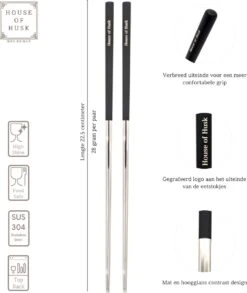 House Of Husk Chopsticks Set – Koreaanse Eetstokjes – Vaatwasserbestendig – RVS – 5 Paar – Zwart