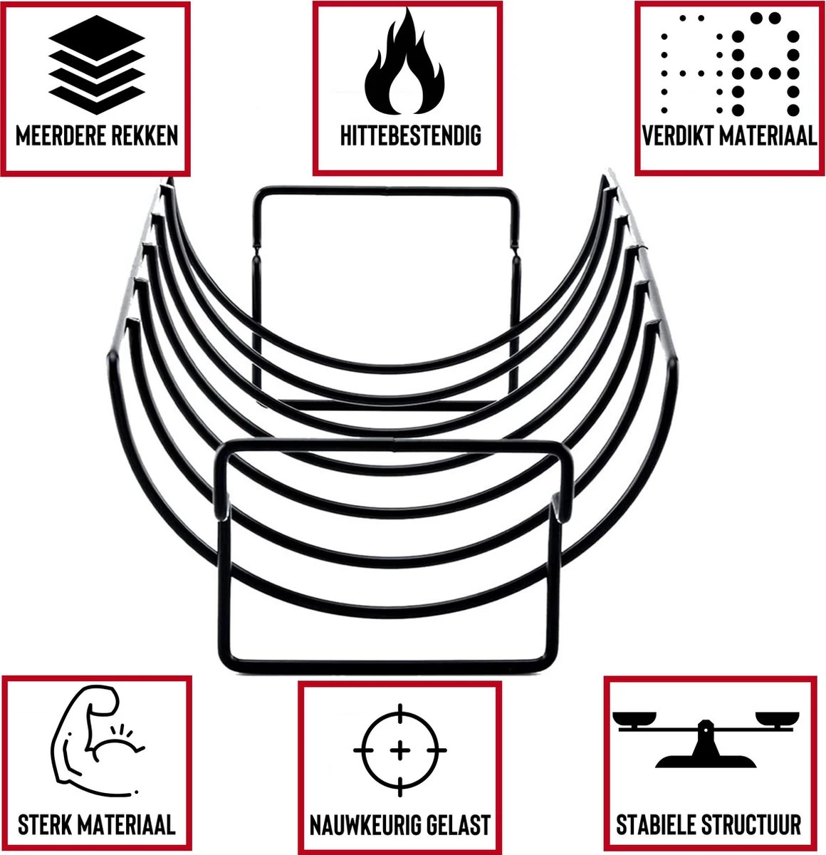 - Spareribs diagonaal garen: de zes bogen van deze spareribs rek zijn precies goed gebogen, zodat je spareribs verticaal blijven staan zonder dat ze ertussenuit vallen. De ruimtes tussen de rekken zorgen dat rook en warmte gelijkmatig circuleert en het vlees gelijkmatig verhit wordt.