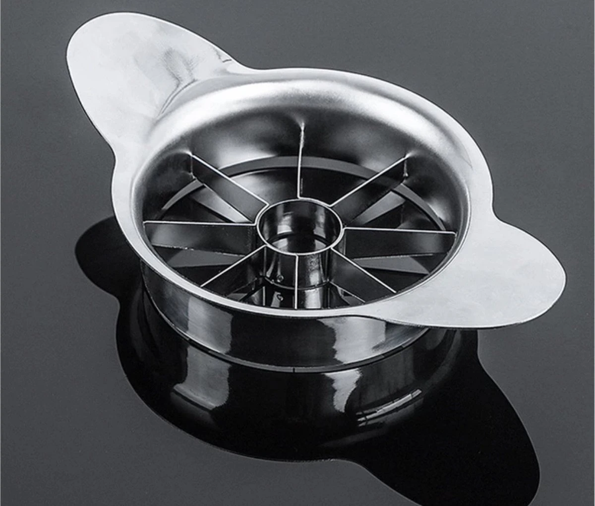 Met deze appelsnijder snijd je in een handomdraai een appel in mooie, gelijke stukjes. Het klokhuis wordt tegelijkertijd verwijderd. Een handig keukenhulpje voor wie snel een gezonde snack bij de hand wil hebben