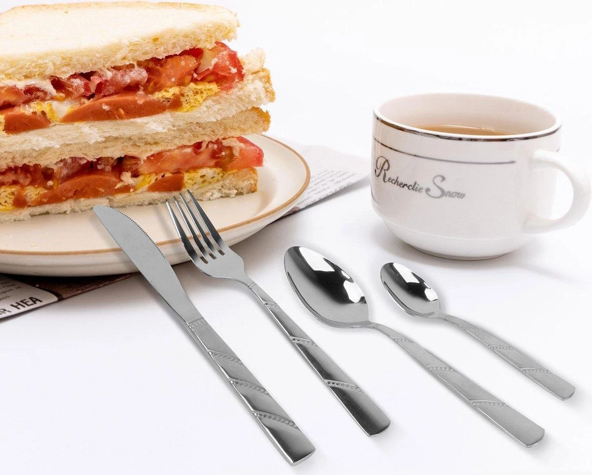 Het bestek is gemaakt van roestvrij staal en is geschikt voor de vaatwasser. De bestekset zit in een opbergkoffer met cijferslot, zodat je je bestek altijd veilig kunt opbergen. Deze tijdloze en uitgebreide bestekset zorgt ervoor dat je altijd genoeg bestek hebt!