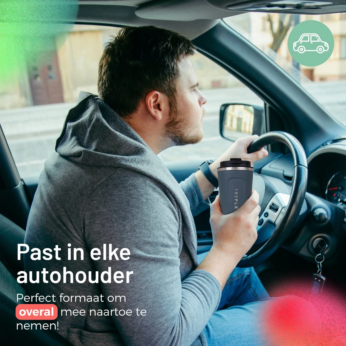 Ben je op zoek naar een handige en stijlvolle koffiebeker to go om je koffie mee te nemen? Dan is de Triple J® Koffiebeker To Go ideaal! Gemaakt van hoogwaardig roestvrij staal, met een inhoud van 380ml en voorzien van een dubbele wandisolatie, blijft je koffie tot wel 4 uur warm en past de koffiebeker to go in vrijwel elke autohouder.